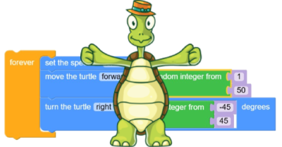blocks, like the assignment of variables, loops, turtle movements, and more.